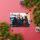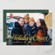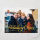 Send Holiday Cheer in style with this classic holiday photo card. Featuring a unique flourish retro script in gold on the front, this holiday card has room for a large family photo on the front and three photos on the back. The dotted green back also includes a place for custom text - a family update, well wishes and more. This classic family holiday card can be found in a variety of colors and styles in the collection by Lea Delaveris Design.