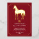 Célébrez l'Année du Cheval avec grâce et style! Ces cartes du Nouvel An chinois présentent un cheval majestueux en feuille d'or, dressé contre un arrière - plan rouge audacieux, symbolisant la force et la prospérité. Parfait pour partager vos souhaits de chance et de succès. Envoyez une touche d'élégance ce Nouvel An lunaire !