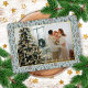 Cette carte de vacances se distingue par son design unique et élégant. Il présente un accueil classique "Joyeux Noël" imprimé en papier d'or véritable, rehaussé par un motif hivernal de baies rouges Holly et des aiguilles turquoises de pin vert sur un arrière - plan bleu gris clair. Sur le recto de la carte, vous pouvez inclure votre nom de famille et l'année en cours. Le dos offre une excellente occasion d'ajouter un accueil saisonnier personnalisé ou un poème, rendant votre message vraiment mémorable. Cette carte est le choix idéal pour transmettre vos souhaits de vacances dans le style.