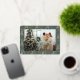 Cette carte de vacances se distingue par son design unique et élégant. Il présente un accueil classique "Joyeux Noël" imprimé en feuille d'or véritable, rehaussé par un motif hivernal de pins verts recouvert de neige. Sur le recto de la carte, vous pouvez inclure votre nom de famille et l'année en cours. Le dos offre une excellente occasion d'ajouter un accueil saisonnier personnalisé ou un poème, rendant votre message vraiment mémorable. Cette carte est le choix idéal pour transmettre vos souhaits de vacances dans le style.