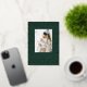 Bring a touch of nature-inspired elegance to your holiday greetings with this beautifully detailed photo card. The deep forest green background is covered in a delicate pattern of ferns, pine sprigs, and berries, all shimmering in rich gold foil. Your favorite family photo is classically framed and the "Merry Christmas" greeting below is beautifully accented in matching gold foil, giving your card a truly luxurious and botanical feel.