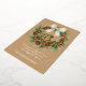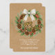 Cette carte de vacances magnifiquement conçue présente un accueil Happy Holidays imprimé en véritable feuille d'or, l'élégante aquarelle d'une couronne ornée d'un arc blanc, de pinecones, de feuilles verts saints, de baies rouges et d'aiguilles de pin. Son design élégant mais rustique saisit l'essence de la période des fêtes de décembre et séduit ceux qui apprécient les illustrations artistiques. La carte offre des options de personnalisation, vous permettant de la personnaliser avec votre nom de société, nom de famille ou nom individuel. En outre, vous pouvez inclure un poème de salutation saisonnier sur le front, ce qui en fait un choix réfléchi pour diffuser la joie des vacances.
