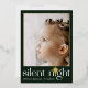 Belle et classique carte de vacances photo vert foncé dispose d'élégante typographie de nuit blanche et silencieuse avec une véritable étoile de Noël en feuille d'or et une photo. Personnalisez ce salut religieux de Noël avec votre propre photo et votre nom.