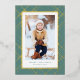 Chic et élégant, cette carte de Noël en une photo est la façon idéale d'envoyer des voeux de vacances à des amis et à la famille. Le plaid en or encadre une seule photo verticale. Les deux zones de texte peuvent être customisées avec votre propre salutation, nom, année ou tout autre message. Le dos est un vert sauge assorti avec des points blancs. Le salut peut être édité pour Joyeux Noël, Joyeux Fêtes, Bonne Année ou tout message! Cette carte de vacances simple est parfaite pour les familles, les jeunes mariés et plus !