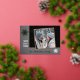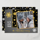 Unique, classique, tendance, jolie et décorative Carte de vacances. Mignonne AVEC AMOUR DU texte et de la chambre à customiser ou à personnaliser avec une photo et les noms (ou nom de famille) de votre choix sur mignon amusant flocons de neige éparpillé design motif sur un arrière - plan noir et gris chic. Et une saison personnalisable saluant poème sur le dos de la carte.