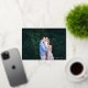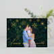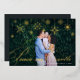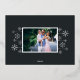 Un design élégant et classique de carte de vacances avec un fond de saignement plein horizontale ou une photo orientée paysage, avec une bordure de flocon de neige en feuille d'or en haut. "Paix sur Terre" apparaît dans le script de calligraphie traditionnel. Personnalisez avec votre nom de famille et l'année en lettres blanches en bas à droite, et ajoutez une deuxième photo au dos.