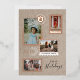 Envoyez une livraison spéciale à votre famille et à vos amis pendant cette période des fêtes avec notre carte de vœux de vacances en forme de photo-collage avec des timbres-poste de livraison spéciale amusants. Le design présente une texture marron kraft imitation pour ressembler à un colis emballé. Collage amusant avec 4 photos pour afficher vos souvenirs de famille spéciaux avec des timbres à feuilles d'or et des marques postales, ainsi que des phrases de texte personnalisables avec la signature de la famille, l'année et le monogramme. Conçu par Moodthology Papery