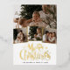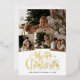 Carte de vacances à feuilles métalliques Collage photo d'écriture de Joyeux Noël