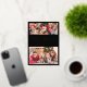 Montage photo moderne carte de vacances en feuille d'or de Noël. Remplacez les photos par les vôtres et modifiez le texte. 4 photo collage. 3 petites photos en haut et une grande photo en bas. Arrière - plan noir avec texte en feuille d'or au centre de la carte.