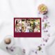 Célébrez la saison avec la carte de vacances Modern Elegant Joyeux Noël Bourgogne Photo Collage feuille de vacances. Ce design élégant présente un collage de 5 photos à l'avant, avec 4 photos carrés entourant une photo plus grande au centre. "Joyeux Noël" est magnifiquement affiché en papier doré tendance sur un arrière - plan bordeaux. Customisez avec votre nom de famille et votre année pour une touche personnelle. Le dos offre de l'espace pour deux autres photos et un message sincère. Parfait pour présenter vos souvenirs chéris d'une manière simple et élégante. Partagez la joie des vacances avec ce design intemporel et photo-centré.