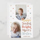 Envoyez votre joie, votre joie et votre bonheur de vacances à votre famille et à vos amis avec notre carte de Noël en feuille d'or rose confetti amusante et moderne. Le design comprend deux modèles photo en arcs avec des confettis colorés avec des accents de feuille d'or rose. "Joyeux, Joyeux, Lumineux, Joyeux Noël" est présenté dans un design amusant avec des accents d'or rose. Personnalisez avec le nom de famille et l'année. Conception Par Moodthologie Papery.