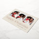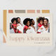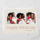 Partagez vos salutations de vacances avec ces magnifiques cartes photos Kwanzaa avec 3 photos verticales ou orientées portrait alignées côte à côte. "Happy Kwanzaa" apparaît sous la feuille d'or rose connectée en bas de la serif coque en lettres accentuées avec les étoiles. Personnalisez avec votre nom de famille et l'année.