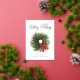Une carte de vœux de fin d'année d'entreprise présente une illustration aquarelle d'une couronne de Noël avec Joyeuses Fêtes en typographie en feuille d'or. Personnalisez avec le nom de votre entreprise sur le devant et un message personnel avec votre logo au verso.