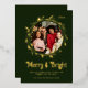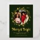 Couronne florale de script joyeuse et lumineuse de photo moderne Cartes de vacances à feuille d'or comprend une couronne florale hivernale en véritable feuille d'or entourant votre photo préférée avec le texte "Joyeux et lumineux" et votre message personnalisé ci-dessous en typographie de script moderne. Conçu par ©Evco Holidays www.zazzle.com/store/evcoholidays