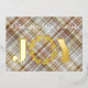 Unique, classique, tendance, jolie et décorative carte de vacances encadrée avec classique contemporain rouge, vert et doré couleur argent de saison Holly baies et feuille motif de couronne sur un écossais écossais en vichy chèque arrière - plan. Avec de la place pour customiser ou personnaliser avec votre nom de famille ou d'entreprise et un message de votre choix à l'arrière de la carte.