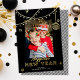 Carte De Vœux En Aluminium Cute Fun Doodles Happy New Year Photo Black + Gold