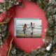Parfait pour ceux qui vivent dans des climats tropicaux, ou pour partager une photo de vacances en faute, ou des caractéristiques de carte photo de vacances optionnelles "Dashing Through the Sand" comme une feuille d'or superposée avec des illustrations d'étoiles de mer. Personnalisez avec vos noms et salutation personnalisée (spectacle avec "voeux les plus chauds") en bas. Les cartes renversent vers un motif d'étoiles de mer blanc sur un aqua poussiéreux clair.