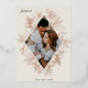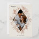 Une carte de vacances moderne et élégante qui encadre votre photo verticale ou orientée portrait dans un cadre en or rose magnifiquement détaillé en losange avec des feuilles saints, des baies et des feuilles d'hiver. "Paix" apparaît en haut à gauche, avec votre nom de famille en bas. L'année est dissimulée élégamment dans le cadre botanique finement détaillé. Une nature délicate et raffinée inspiré choix pour vos cartes de Noël 2022.