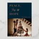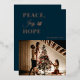 Script Blue Gold moderne Peace Joy Hope Photo Real Foil Carte de vacances. Envoyez des voeux de vacances avec des photos à vos proches avec cette carte de vacances Foil moderne et festive. Tous les textes sont pré-arrangés pour que vous personnalisiez facilement et rapidement avec vos propres détails. Joyeuses fêtes !