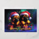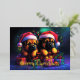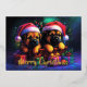 Carte De Vœux En Aluminium Deux mignonnes chiots à Santa Hats