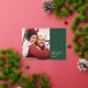 Ce carte photo de vacances en feuille drôle présente une typographie de style rétro lisant, "Regardez-nous, étant tous festifs et des trucs" en véritable feuille d'or. Un petit arbre de Noël en feuille d'or apporte une touche festive particulière. Don ces chapeaux de Père Noël, des bois de rennes, des chandails moches, ou d'autres tenues et accessoires de Noël évidents. Puis prenez quelques photos. Téléchargez votre favori, et, voilà - vous avez vous-même une carte de vacances qui est sûr d'apporter des sourires à vos amis et votre famille! La couleur arrière - plan (en vert foncé) peut être facilement customisée à n'importe quelle couleur que vous souhaitez. Le dos de la carte contient un motif blanc de Noël sur un arrière - plan vert foncé.