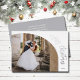 Joyeux Noël en véritables courbes de feuille d'argent dans un élégant script sur le devant de ces cartes de vœux de Noël avec photo. Votre message personnel et les noms sont au dos. Assurez-vous de vérifier votre commande avant de l'ajouter à votre panier, car ce que vous voyez à l'écran est ce qui sera imprimé. Le service de conception en ligne peut vous aider avec la mise en page de votre conception si nécessaire.