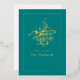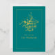 Carte de vacances de calligraphie Eid Mubarak sarcelle et or personnalisable à vos spécificités.