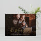 Envoyez les voeux du Nouvel An avec ces cartes photos chics avec votre nom de famille revêtu de lettres manuscrites en feuille d'or. Personnalisez avec votre message personnalisé en dessous. Les cartes renversent un motif de minuscules étoiles blanches.