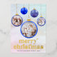 Celebrate the season in style with this Elegant Blue Ornament Christmas Photo Card featuring a modern pastel background adorned with shimmering blue ornaments. This customizable holiday card lets you showcase your favorite family photos in a festive and sophisticated way. The gold foil “Merry Christmas” typography adds a luxurious touch, creating the perfect blend of warmth and elegance for your holiday greetings.