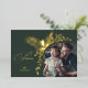 Élégant feuille d'or Calligraphie de paix sur arrière - plan vert foncé, modèle photo incurvé, feuille d'or Bordure botanique de Noël et champs de texte modifiables.