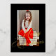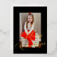 Carte De Vœux En Aluminium Elegant Gold Script Black Frame Photo