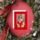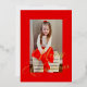 Carte De Vœux En Aluminium Elégant Gold Script Red Frame Photo