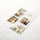 Elégant et unique 3 photos de vacances design floral avec bouquets d'angle de poinsettia blanche style aquarelle, saint et pin avec étincelles de feuille d'or et des reflets floraux. Inclut un accueil Joyeux Noël en écriture dorée décorative et un champ de texte modifiable. L'arrière comporte un graphique floral complémentaire et des champs de texte supplémentaires.
