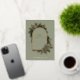Envoyez une salutation d'élégance pure en cette période de fêtes ! Cette luxueuse carte de Noël est ornée d'un arrière - plan vert sauge magnifiquement orné d'une magnifique illustration botanique en feuille d'or. Une arche ornée, minutieusement détaillée avec des poinsettias, des baies et du feuillage à feuillage persistant, encadre le message central "Joyeux Noël". Ce design non photo exquis permet la beauté de l'oeuvre et de votre texte personnalisé à briller. Sous l'arc, vous pouvez facilement customiser le nom de famille et l'année, tandis que le dos spacieux de la carte est entièrement personnalisable pour votre message de vacances sincère. Design par Anna Szalacha © Happy Ann Designs.