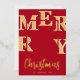 Elégante photo Rouge moderne Joyeux Script de Noël Foil Carte de vacances.