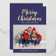 Personalized Elegant Navy Blue Gold Script Christmas Photo Foil Holiday Card.