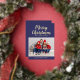 Carte De Vœux En Aluminium Elegant Navy Blue Gold Script Christmas Photo