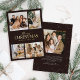 Célébrez la saison avec ce design moderne, élégant noir et or Joyeux Noël carte photo avec une élégante typographie de feuille d'or avec votre nom de famille et votre année, plus un collage photo personnalisable de quatre photos à l'avant, plus une à l'envers. Un accueil personnel est également au verso pour que vous puissiez ajouter une note saisonnière spéciale. Le choix idéal pour les familles modernes qui veulent des cartes de Noël avec goût, ce design élégant met en valeur vos photos préférées, tandis que la feuille d'or accrocheuse contraste magnifiquement avec le riche arrière - plan noir. Ajoutez la touche finale avec vos propres photos pour créer une esthétique parfaitement équilibrée, moderne et charmante pour partager votre amour et vos meilleurs voeux cette saison de vacances!
