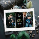 Ces cartes de Noël élégantes comportent deux modèles photo et un centre de blocs de couleurs (en noir - la couleur peut être customisée, si désiré). Les éléments de design comprennent la lecture de typographie moderne, "Joyeux Noël" en papier d'aluminium (choisir l'or, l'or rose ou l'argent), ainsi que deux baies sèches et des arrangements feuille. Un contour rectangulaire de feuille ajoute une touche de classe. Le dos de la carte contient un motif de baies sèches sur un arrière - plan noir.