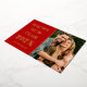 Élégante carte de vœux rouge et véritable feuille d'or "Bonne année 2026" personnalisée avec une photo, le nom de famille ou tout texte personnalisé, et un message personnalisé au verso.