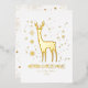 Cet élégant renne blanc et or moderne Real Foil Joyeux Noël non photo design dispose d'un renne entouré d'un élégant ensemble de flocons de neige et d'étoiles. Le dos de l'invitation est un motif festif des mêmes illustrations de Noël. Vous pouvez customiser la couleur arrière - plan et le texte. Ce design est parfait pour une carte Joyeux Noël. Voir toute la collection correspondante !