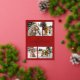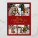 Partagez la joie de la saison avec ce design moderne et élégant de carte photo Joyeux Noël avec une typographie stylée de feuille d'or avec votre nom de famille et votre année, plus un collage de quatre photos personnalisable à l'avant et un à l'arrière. Un message d'accueil personnel est également à l'envers pour vous d'ajouter une note spéciale tout mis sur un doux motif de confetti de neige. Idéal pour les familles modernes qui veulent des cartes de Noël de bon goût, ce design élégant met en valeur vos photos préférées et l'éclat de texte métallique luxueux crée un look surélevé. La feuille d'or qui attire l'oeil contraste magnifiquement avec le riche décor rouge festif, tandis que vos photos ajoutent un charme personnel spécial pour créer une esthétique parfaitement équilibrée, moderne et chaleureuse pour partager votre amour et vos salutations de saison avec vos amis et votre famille!