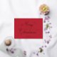 Elégante carte de vacances rouge avec "Joyeux Noël" présentée dans un script de calligraphie élégant et votre nom de famille en lettres modernes simples, le tout rendu dans votre choix d'argent ou d'or véritable feuille. Au dos, ajoutez deux photos et votre salutation personnalisée.