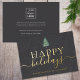 Modern elegant happy holidays Business Logo charcoal gray and gold foil holiday Greeting Card with a stylish Minimalist Watercolor snowy Woodland christmas pine tree with festive lights and whimsical Gold Foil Script