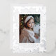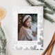 Elegant foil holiday card featuring your vertical photo framed by silver foil pine boughs. Personalize the foil pine branch holiday card with a custom greeting, the year, and your family name. The card reverses to display your custom message in black lettering.