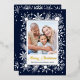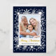 Carte De Vœux En Aluminium Élégant Stylish Navy Snowflake Family Photo