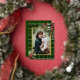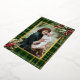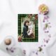 Design de vacances riche, classique et élégant avec ajouter une touche de luxe abordable à votre accueil de saison! Affichez votre photo de famille à aspect portrait unique entourée d'un plaid vert et or profond, d'une bordure dorée et d'ornements festifs de l'angle. Le motif, la bordure et le texte plaid sont dotés d'une véritable feuille d'or. Le texte est modifiable et la couleur solide personnalisable est disponible au dos.