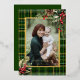 Carte De Vœux En Aluminium Élégant vert / Or Plaid Holly Photo de Noël