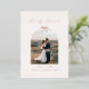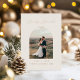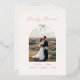 Célébrez votre première période de fêtes en tant que jeunes mariés avec une élégance intemporelle et une touche de joie festive. Cette carte de vœux de fêtes "Merrily Married" en papier métallisé présente votre photo de mariage ou de couple préférée dans un cadre en arche gracieux, magnifiquement complété par des accents délicats en papier métallisé et une illustration de ruban fantaisiste qui enveloppe votre message de chaleur et de grâce. Tournez la carte pour découvrir un message personnalisable au verso. Parfaite pour partager les moments forts de votre année, exprimer votre gratitude et envoyer votre amour à votre famille et vos amis.