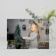 Carte de vacances en feuille classique avec votre photo horizontale avec "Paix sur Terre" affichée dans un élégant script en feuille d'or. Personnalisez l'avant de la carte avec votre nom de famille. La carte revient à un motif moderne en treillis rouge et blanc.